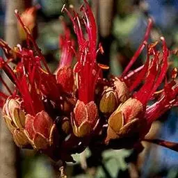 应选8-15年生、主干通直、树皮青灰色的植株为采种母株。种子成熟后不脱落,不开裂,一年四季均可采种。果实外表由嫩绿转为暗绿色至灰褐色时可采收。果实出种率3%-4%,发芽率72%一85%。苗圃地要求细致整地作床,播种季节除冬季外,可随时播种。种子播下后,覆土盖草淋水。4-6天发芽,揭去盖草,7-10天后可拆去荫棚。一年生苗高可达2-3m。主根深,须根少,因此,裸根苗造林不易成活,宜小苗带土或用营养砖育苗。营养砖是在圃地上用肥料掺混泥浆制8cm×8cm×15cm的营养块,在砖面上按出1-2cm的浅穴,把种子播入穴中,然后用过筛细土覆盖。成苗后,带砖上山造林,成活率高。50-70天后,苗木高达15-25cm时,即可上山造林。