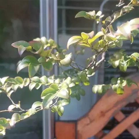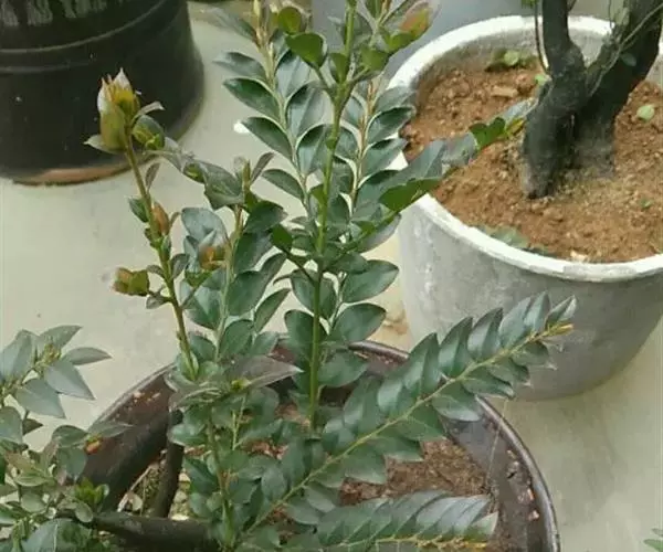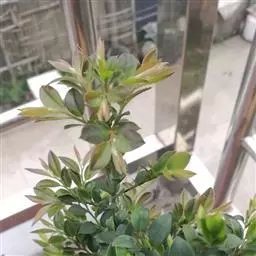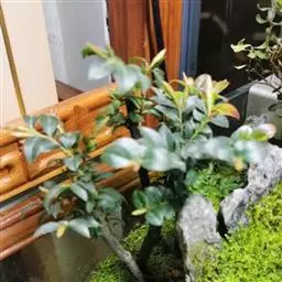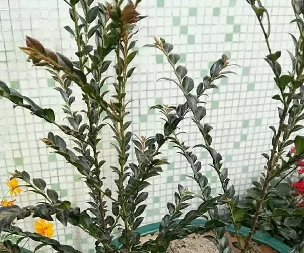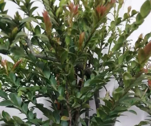 多枝常绿矮灌木,幼枝绿色,老时深褐色,树干黑褐色。嫩枝、嫩叶和冬芽有锈色柔毛。新生嫩叶褐红色。