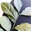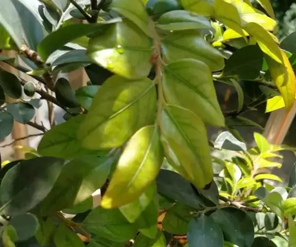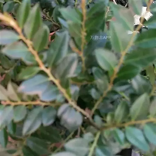 叶革质或薄革质,通常卵形,长2-3厘米,宽9-12毫米,较小的叶有时近圆形。叶先端急尖,有短针尖,基部钝或近圆形,全缘,叶边初时有睫毛。叶片表面深绿光亮,无毛,叶背浅绿色,中脉上面初时有短柔毛,中脉在两面凸起,侧脉和小脉极不明显。叶柄很短,长约1毫米,有锈色毛,后变无毛。