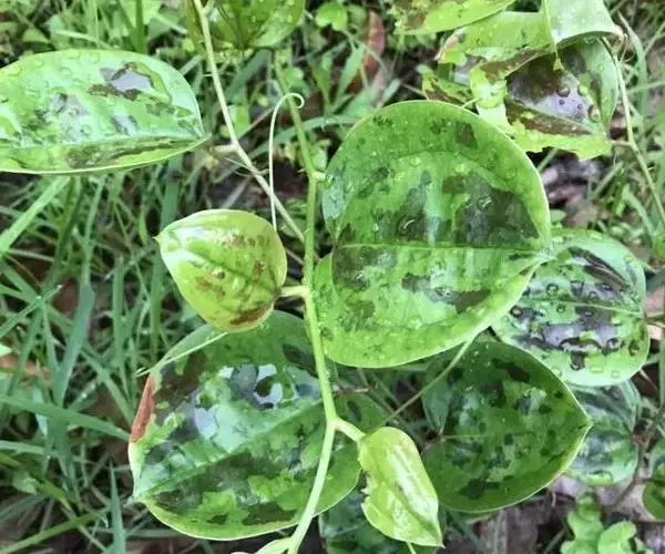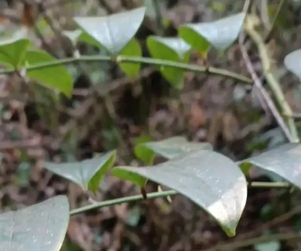 菝葜,菝葜科菝葜属 多年生藤本落叶攀附植物,茎干较粗,嫩白色,呈圆柱形,表面带有小刺;叶子较大,…