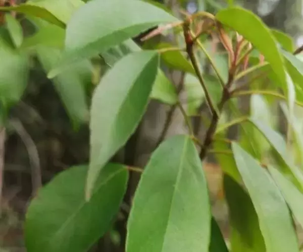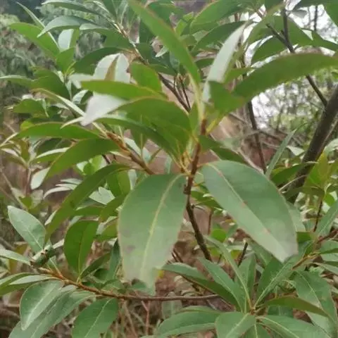 常绿小乔木,高3-7米;嫩枝有柔毛,老枝秃净,干后黑褐色。叶薄革质,卵状披针形或披针形,长5-8厘米,宽2-3厘米,先端渐尖,基部圆形,稀为阔楔形,上面绿色有光泽,下面有细小黑腺点,在芽体开放时上面略有疏毛,很快上下两面变秃净,侧脉4-6对,在上面隐约可见,在下面稍突起,网脉不明显,边缘有波状小钝齿;叶柄纤细,长1.5-2厘米,幼嫩时略被毛。