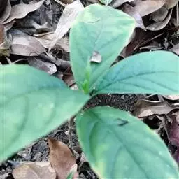 叶密集地排于小枝顶部,叶片近革质,椭圆形、椭圆状披针形或倒披针形,长4-10厘米,宽1.5-3厘米,先端渐尖至尾状渐尖,基部渐狭至楔形,全缘,波状,叶面绿色,背面淡绿色,两面无毛,主脉上面凹陷,背面隆起,侧脉8-9对,上面明显,背面略突起,于边缘附近网结,网脉不见;叶柄长6-10毫米,上面具槽。
