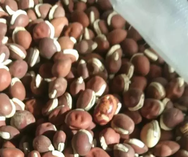 2、赤豆种子近矩圆形而稍扁,直径4-6mm,与赤小豆的主要区别为种脐平而不突起,中央也不凹陷。