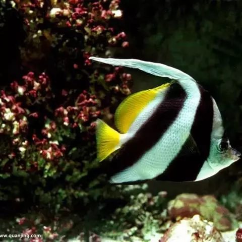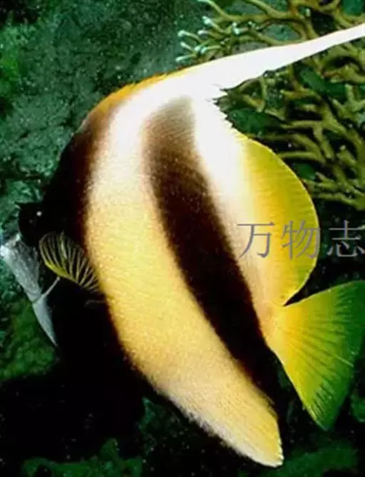 马夫鱼(学名:Heniochus acuminatus)。成鱼体甚侧扁,背缘高而隆起,略呈三角形。背鳍鳍棘11根,第四鳍棘延长呈鞭状,鳍膜亦随之延长。口小。牙细尖呈刚毛状。体侧有2条宽横黑带间杂宽阔白色肤纹。侧线完全。尾鳍近截形。身体,尾鳍及背鳍呈现亮黄。此鱼广泛分布于印度洋与太平洋,中国只产于南海,是海南岛沿海水域的常见物种。为暖水性小型珊瑚礁鱼,一般体长100毫米左右,最大可达200毫米以上。