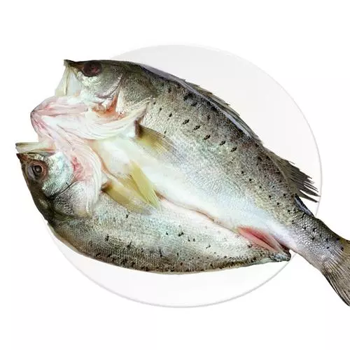 鲈鱼,体长侧扁,下颌长于上颌,肉坚实呈蒜瓣状,鱼鳔可制鱼肚,常清蒸食用。