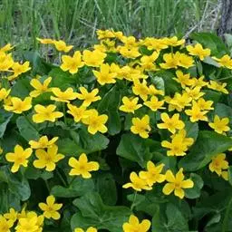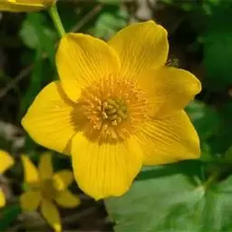 驴蹄草(学名:Caltha palustris L.)是毛茛科,驴蹄草属多年生草本植物,全部无毛,有多数肉质须根。茎高可达48厘米,实心,具细纵沟,基生叶有长柄;叶片圆形,圆肾形或心形,顶端圆形,基部深心形或基部二裂片互相覆压,边缘全小齿;聚伞花序;苞片三角状心形,边缘牙齿;萼片黄色,倒卵形或狭倒卵形,花药长圆形,花丝狭线形;种子狭卵球形,黑色,5-9月开花,6月开始结果。