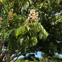 天师栗,,亦称“猴板栗”,是无患子目、七叶树科、七叶树属落叶乔木。小枝密生细毛。掌状复叶对生,小叶…