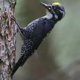 三趾啄木鸟(学名:Picoides tridactylus),是啄木鸟科、啄木鸟属的小型鸟类,体长20-23cm,雄鸟头顶金黄色,雌鸟黑色而具白色斑点。眼至耳覆羽黑色,眼后有一条白色纵纹,颊纹白色,颚纹黑色,甚为醒目。枕和后颈黑色,背和腰白色;飞羽黑色而具白色横斑。下体白色,胸侧具黑色纵纹,后胁具黑色横斑。