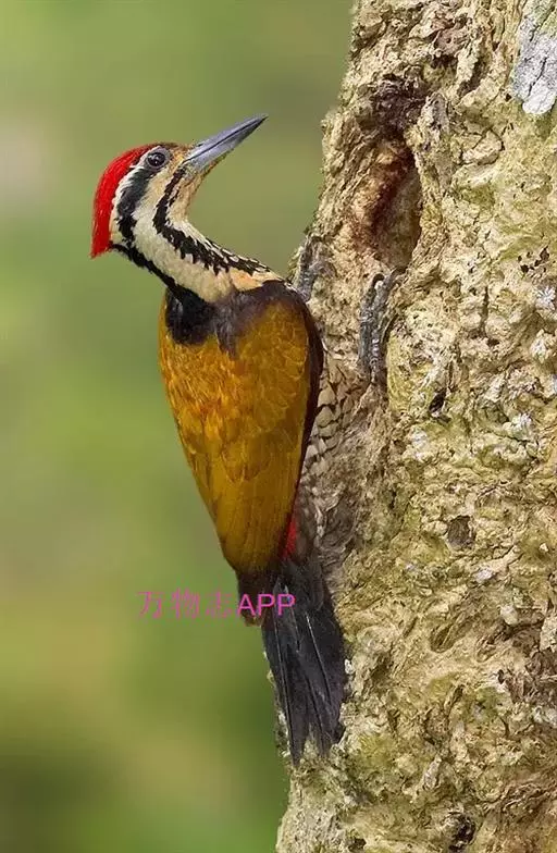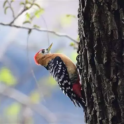 棕腹啄木鸟为啄木鸟科,啄木鸟属是中等体型的鸟类,体长约20厘米。头顶部具红色斑带。脚强健,有趾4个,…