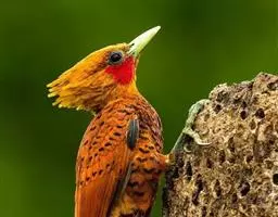 栗啄木鸟:是一种红褐色啄木鸟,体长21厘米。雄性成鸟整个头棕色,…