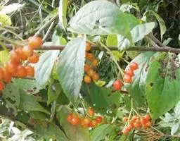 多年生落叶灌木。植株高1.5-2.5米,新叶金黄色,老叶绿色。花成顶生的聚伞花序,为白色和乳白色。浆果状核果,红色,果期6-8月。