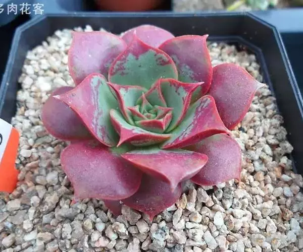 小红衣是景天科、拟石莲花属的一种多肉植物。叶片匙形,扁平细长,叶表具白粉,有明显的半透明边缘,…