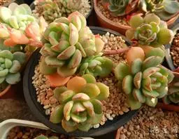 吉娃莲,景天科拟石莲花属,别名:吉娃娃,吉娃莲,植株小型,无茎的莲座叶盘非常紧凑。卵形叶较厚,带小尖,…