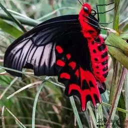 曙凤蝶是凤蝶科、曙凤蝶属蝴蝶。体背黑色,头、颈、胸侧及腹侧具红色鳞毛。雌、雄异型。雄蝶翅黑绒色,…