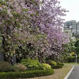洋紫荆:落叶乔木;树皮暗褐色,近光滑;幼嫩部分常被灰色短柔毛;枝广展,硬而稍呈之字曲折,无毛。叶近…