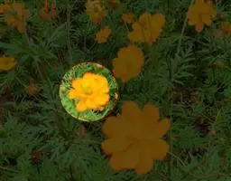 万寿菊是菊科万寿菊属一年生草本植物,别名孔雀菊、缎子花、臭菊花、西番菊、红黄草、小万寿菊、臭芙蓉、孔雀草。万寿菊茎近基部分枝。叶羽状分裂,长5-10厘米,宽4-8厘米,裂片长椭圆形或披针形,具锐齿,上部叶裂片齿端有长细芒,叶缘有少数腺体。头状花序单生,径5-8厘米,花序梗顶端棍棒状。总苞长1.8-2厘米,径1-1.5厘米,杯状,顶端具尖齿。舌状花黄或暗橙黄色,长2.9厘米,舌片倒卵形,长1.4厘米,基部成长爪,先端微弯缺。管状花花冠黄色,长约9毫米,冠檐5齿裂。瘦果线形,被微毛;冠毛有1-2长芒和2-3短而钝鳞片。花期7-9月。万寿菊中国各地均有栽培,在广东和云南南部、东南部已归化,国外原产墨西哥。万寿菊对土壤要求不严,但以肥沃疏松排水良好的土壤为好。耐移栽,种子发芽适温21-24℃,植株生长适合温度为20-29℃。喜温暖和阳光充足的环境,不