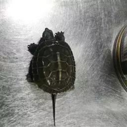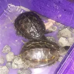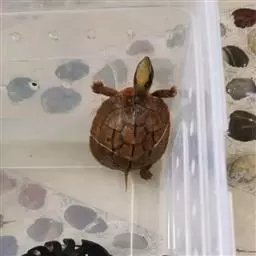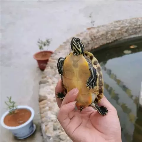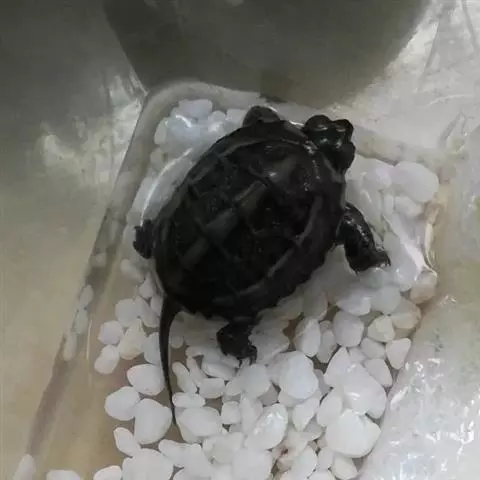 刚孵出的稚龟重4.1-6.9克,背甲长26-35毫米,宽22-27毫米。稚龟出壳后,不应立即取出,让龟在孵化箱内1-2天后,将腹部肚脐完全收缩的龟拿出,放于盆中饲养,水位0.5-1.0厘米。肚脐未完全收缩的则继续留在孵化箱中静养。龟开食后移入幼龟池,水深约50厘米,池内放养浮萍,投喂碎肉、鱼肉等动物性饵料,饵料放置在斜坡上。