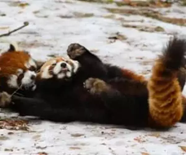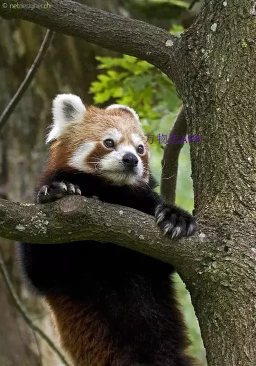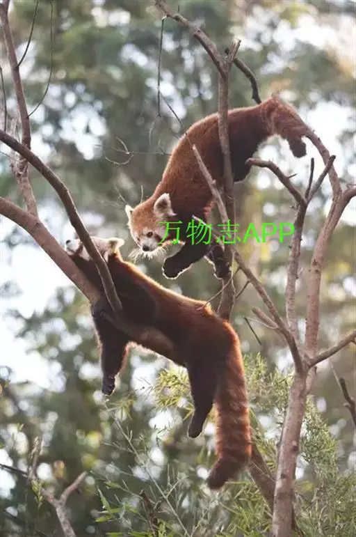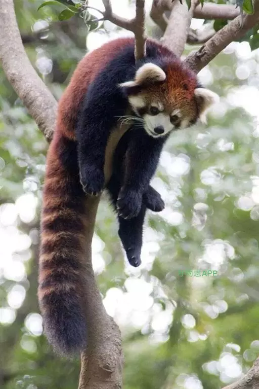 小熊猫幼仔 于树枝上。善于攀爬,往往能爬到高而细的树枝上休息或躲避敌害。由于它脚底长有厚密的绒毛,因此也适于在林下滑湿的苔藓地、或岩石上行走。走路时前足内弯,步态蹒跚,与熊相似。平时行动缓慢,性情较为温驯,很少发出叫声。听觉与视觉较迟钝,嗅觉也不特别灵敏。一般单只或成对或集小群活动。无冬眠习性,下雨、雪时多在岩石缝隙中或大树树荫深处躲避雨雪。