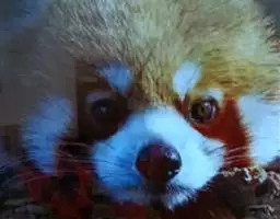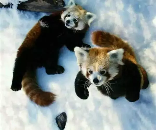 成体毛色:小熊猫成兽全身被有红褐色粗的长毛,但有的个体在臀背部有鲜亮的橙黄色毛尖,绒毛灰褐色,甚为丰厚。鼻端、眼圈为黑褐色,胡须为白色。嘴周围,鼻上部、两颊、眼眉上都有白斑。头部前额为棕黄色或淡黄棕色。耳壳外缘及耳内长有白毛,耳背黑褐色,耳基部外侧有一簇白色长毛。颈下及腹部为黑褐色,腹部毛短,色稍浅。四肢和足掌都为黑色,足底有黄色绒毛,盖住蹠垫。爪为乳白色。尾毛粗短而蓬松,上有红褐、黄白、或红褐、黑褐色相间的环纹。尾端为黑褐色。小熊猫的毛色无冬夏毛的差异。