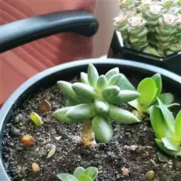 中文名:松虫松虫又名天锦星、金钱章,为多年生草本,叶片紧密排列,叶面有淡绿色斑点。松虫无明显休眠期,可以全日照。夏天的时候通风遮阳,每个月3到4次水,少量在盆边给水慢慢度过盛夏,维持植株根系不会因为过度干燥而干枯就可以。冬天温度低于3度就要逐渐少水,0度以下保持盆土干燥,尽量保持不低于零下3度,冬天尽量少点水,开春给水要循序渐进否则可能出现烂根。松虫的繁殖方法有播种和分株、砍头、叶插。
