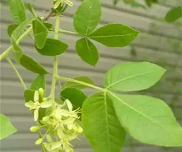 浓密的直立型灌木树皮,有香味,花白绿色星状小花,于夏季时在花之顶端盛开,叶落叶性深绿色的3裂叶,果实浅绿色圆型,果实有翼。树高约3米。树冠圆形,二年生枝赤褐色;芽重叠,无顶芽。叶互生,有3小叶,小叶无柄,卵形至长椭圆形,长6-12厘米,宽3-5厘米,基部两侧略不对称,中央1片小叶的基部楔尖,全缘或边缘细齿裂,叶背脉上有疏毛,侧脉纤细。伞房状聚伞花序,花序宽4-10厘米;花梗被毛;花蕾近圆球形;花淡绿或黄白色,略芳香;萼片长1-2毫米,花瓣椭圆形或倒披针形,边缘被毛,长约8毫米。翅果外形似榆钱,扁圆,径1.5-2厘米或更大,顶端短齿尖,网脉明显。花期5月,果期8-9月。染色体数目2n=36,也有报道为2n=42的 。