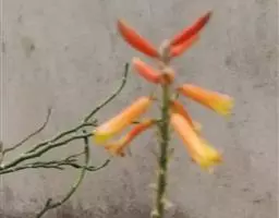 总状花序,无分枝,高20~30厘米,有时达50厘米。花小,长约20毫米,筒状,胃状,鼓起部分约占花被总长的一半,基部粉红色,花被尖端绿色,下垂。 种荚长圆形,长约25毫米,宽约8毫米。