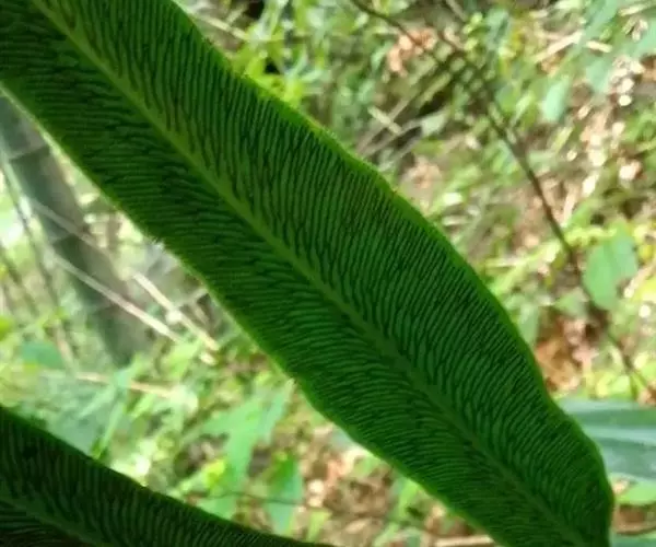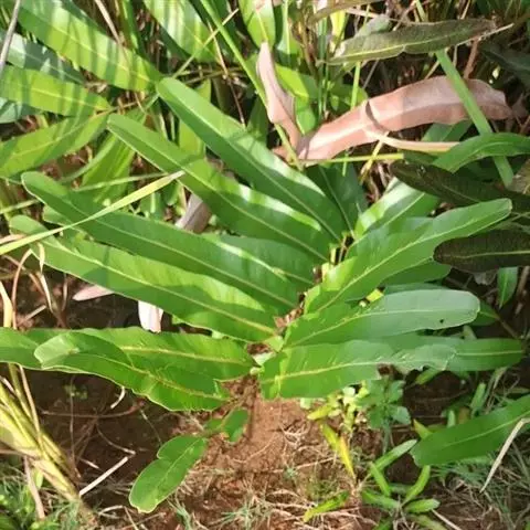 又名风丫草。多年生草本,植株高60-120厘米。叶柄长30-50厘米,粗3-5毫米,禾秆色或栗褐色,基部以上光滑;叶片和叶柄等长或稍长,宽20-30厘米,长圆三角形,二回羽状;羽片通常,对(少则3对),基部一对最大,长20-35厘米,宽10-15厘米,卵圆三角形,柄长1-2厘米,羽状(偶有二叉);侧生小羽片1-3对,长10-15厘米,宽1.5-2.5厘米,披针形,有柄或向上的无柄,顶生小羽片远较侧生的为大,长20-28厘米,宽2.5-4厘米,阔披针形,长渐尖头,通常向基部略变狭,基部为不对称的楔形或叉裂;第二对羽片三出、二叉或从这对起向上均为单一,但略渐变小,和其下羽片的顶生小羽片同形;顶羽片较其下的为大,有长柄;羽片和小羽片边缘有向前伸的疏矮齿。叶脉网状,在羽轴两侧形成2-3行狭长网眼,网眼外的小脉分离,小脉顶端有纺锤形水囊,不到锯齿基部。叶干后纸质,上面暗绿色,下面淡绿色,两面无毛。孢子囊群沿叶脉分布,几达叶边。