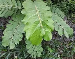 常绿、大型木质藤本。老茎外皮灰褐色,断面淡红褐色,有3-4偏 白花油麻藤 心的同心圆圈,断面先流白汁,2-3分钟后有血红色汁液形成;幼茎具纵沟槽,皮孔褐色,凸起,无毛或节间被伏贴毛。羽状复叶具3小叶,叶长17-30厘米;托叶早落;叶柄长8-20厘米;叶轴长2-4厘米;小叶近革质,顶生小叶椭圆形,卵形或略呈倒卵形,通常较长而狭,长9-16厘米,宽2-6厘米,先端具长达1.3-2厘米的渐尖头,基部圆形或稍楔形,侧生小叶偏斜,长9-16厘米,两面无毛或散生短毛,侧脉3-5,中脉、侧脉、网脉在两面凸起;无小托叶;小叶柄长4-8毫米,具稀疏短毛。