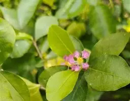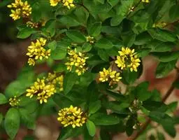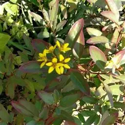 金英常绿灌木,株高约50-160厘米,嫩茎红色。叶片绿色,对生,椭圆形,先端尖,基部楔形,全缘。…