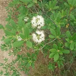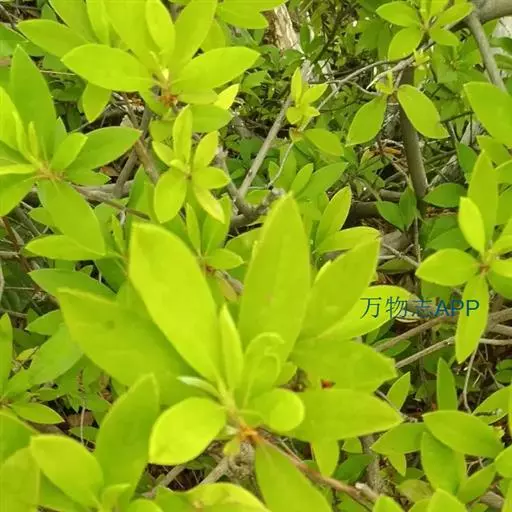 落叶灌木,高2(-5)米;分枝多而纤细,密被亮棕褐色扁平糙伏毛。叶革质,常集生枝端,卵形、椭圆状卵形或倒卵形或倒卵形至倒披针形,长1.5-5厘米,宽0.5-3厘米,先端短渐尖,基部楔形或宽楔形,边缘微反卷,具细齿,上面深绿色,疏被糙伏毛,下面淡白色,密被褐色糙伏毛,中脉在上面凹陷,下面凸出;叶柄长2-6毫米,密被亮棕褐色扁平糙伏毛。