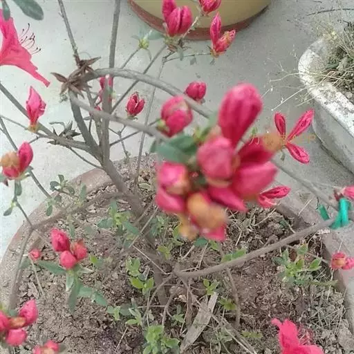 主要特性:植株低矮、枝条细软,无序发枝、横枝多。叶卵形,叶片薄、毛少、嫩绿色、有光泽。花蕾生枝端3-4个,每蕾有花1-3朵,多时4-5朵,开花繁密,真是“不见枝叶只见花”。花冠漏斗状,小型,口径2-4厘米,筒长2-3厘米,多数花萼演变成花冠、形成内外2套,称为双套、夹套。花色多有红、紫、白、粉白、嫩黄、白绿、镶边、洒锦等。有雄蕊5枚,也有雄蕊瓣化成高度重瓣花的。花期比毛鹃略早几天。7-8月老叶凋落,同时花芽形成。不耐强光,可露地种植,萌发力强,极耐修剪,花、枝、叶均纤细,是庭院绿化作色块的好材料,同时也是制作造型盆花的理想材料。