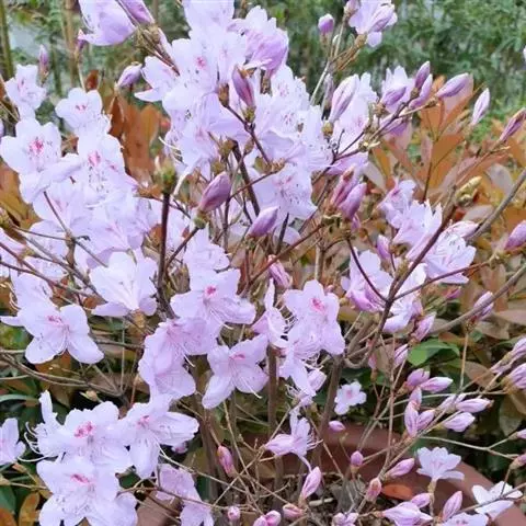 事实上,人们对前面的两种牧珂洛娜图姆杜鹃( R.mucronatum,意译为白花杜鹃)和丽娜日芙丽幕杜鹃(R.linearifolium)是否真的是常绿杜鹃品种存在怀疑。它们在日本已经栽培了三百多年,野生的已无可寻觅了。但是常绿杂交杜鹃是完全是人工的。它们的谱系不再仅仅是还能在野外找到的原始母本了。