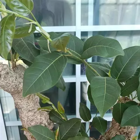 三角榕为常绿乔木或小乔木。叶片近三角形,薄肉质,全缘,长4~6厘米,宽3~5厘米,浓绿色。