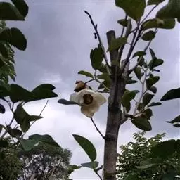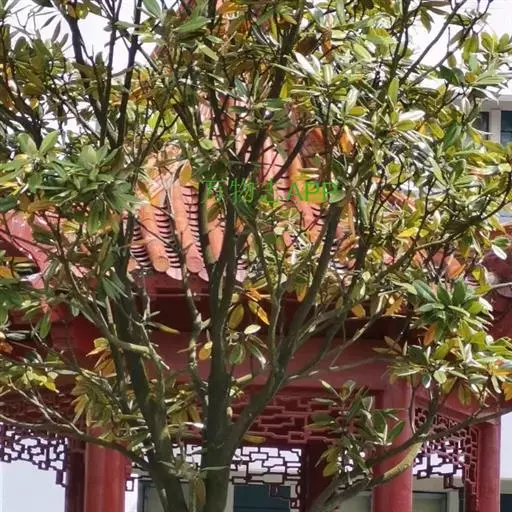 6、其他注意问题:广玉兰大树移栽后应用草绳裹干2米左右以减少水分蒸发,干旱时可向草绳喷水营造一个湿润的小环境。栽植后应设支撑木固定树干,以防晃动,损伤根系。一般打桩不能起到固定作用,可选用长3米至4米的毛竹或其他材料制成的三脚架固定。如果移植后天气干旱,可向树冠喷雾或架高空喷雾,以降低叶片温度。 广玉兰
