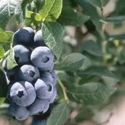 蓝莓是杜鹃花科、越橘属的落叶灌木,小枝绿色,具棱或圆柱形,通常具成行的柔毛;叶片近革质,卵形至椭圆形,…