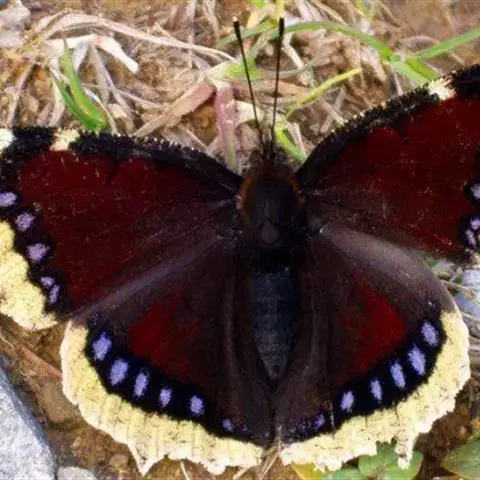 成虫:大型,前翅长约 45- 50毫米,越冬个体较夏季世代小。雌雄同型,翅正面橄榄绿色,前翅有黑色外缘带和亚缘带,中域有大型白斑1列。后翅外缘波状,外缘带黑色,亚缘有1列三角形黑色斑。