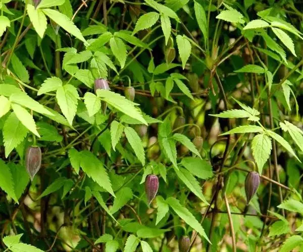 多年生 攀援草质藤本。老枝近于无毛,当年生枝具开展的柔毛。三出复叶、羽状复叶或二回三出复叶,连叶柄长9-15厘米,小叶3-9(-15)枚;小叶片卵状披针形或窄卵形,长3-6厘米, 宽1.5-2.5厘米,顶端渐尖,基部阔楔形或圆形,常偏斜,边缘有整齐的锯齿,表面被稀疏紧贴的柔毛或两面无毛,叶脉在表面平坦,在背面隆起;小叶柄短或长达8毫米;叶柄长3-6厘米,无毛,基部膨大隆起。