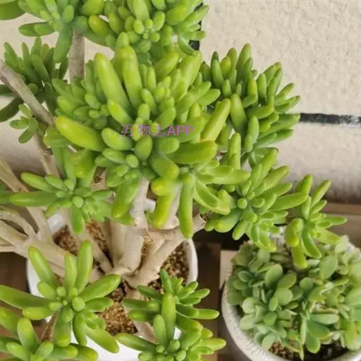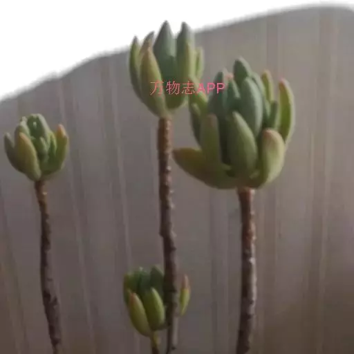 区别二、刚发出的小株也能明显区别!乙女心小株是典型的叶片头大尾小,而且颜色偏青!八千代就算是刚出的小株也是木质杆。而且叶片是头小尾大,颜色偏黄的。