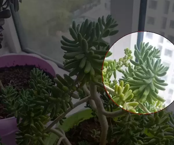 区别一、看杆!这个是区别八千代和乙女心最重要的地方,之前一些文章讲到什么头大头小、什么带粉不带粉,都不如看杆子来得明显。乙女心它怎么长也是个肉质杆,八千代则是显赫的木质杆,杆上的纹理非常明显!乙女心的茎杆是嫩的、绿的;八千代的茎杆是像有树皮一样的,老的、黄的。