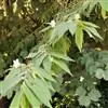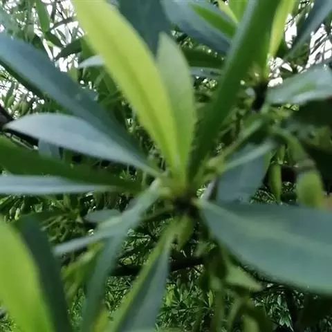 枝叶:枝叶婆娑茂密, 茎皮纤维发达,枝条较柔软,尾部略下垂,叶腋可生枝条,形成“假二回” 或“假三回”羽状复叶效果。叶片纸质,长卵形或长椭圆状卵形,基部偏斜,翠绿清秀。 文定果(花)