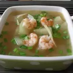 原料:冬瓜100克,瘦羊肉80克,枸杞3克,生姜10克,葱10克。