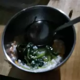 2、石锅加高汤煮开,加入两大勺韩式大酱,咸度不够可以加少许盐