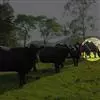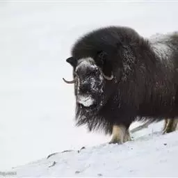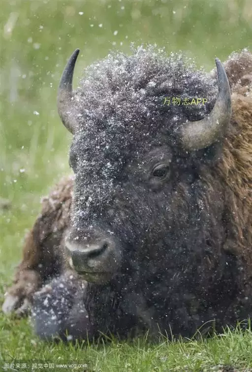 雌性野牛个头比雄性小,驼峰也较小的,颈部略瘦,牛角也更为纤细。
