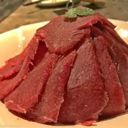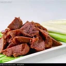 把瘦肉切成一块块的块状,如果内中含有肥肉,要切除干净,不能含有一点点,其三是加上酱油以及特别的香料配方,放到锅中红烧,红烧时火候要掌握好,直到把所有的配料全部吸进了肉内为止;