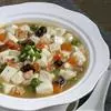 主料:豆腐 400克 辅料:虾仁 150克 毛豆 50克