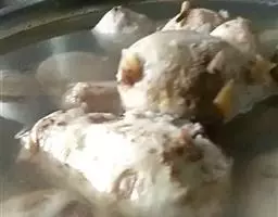 1、将豆腐上锅蒸熟,取出切丁;木耳用温水泡,发后洗净切丁,火腿切丁;