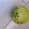 毛叶番荔枝的表皮颜色是绿褐色的,它的形状很不规则,好像有人已经-在上面按了指印。果实隐约呈圆形,果皮有三种类型:凹痕状、结瘤状、或前两种形状的混合;内部的果肉芳香浓郁,白色多汁,肉质像奶油冻。据说水果吃起来像香蕉、百香果、番木瓜和菠萝四种水果的混合口味。马克.吐温在1866年说过“毛叶番荔枝是人类已知最可口的水果”。