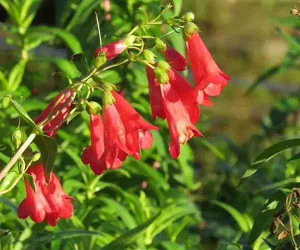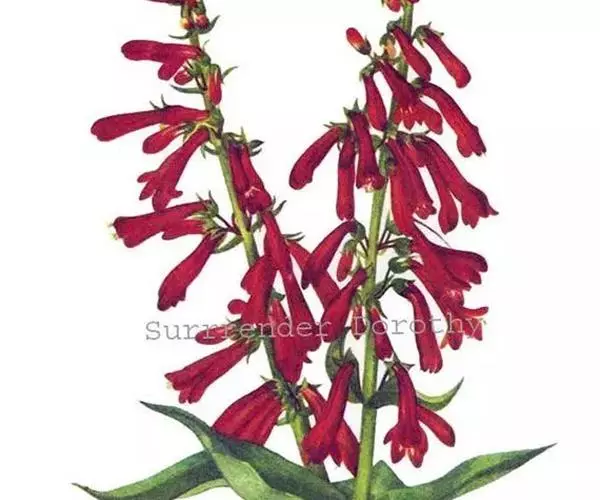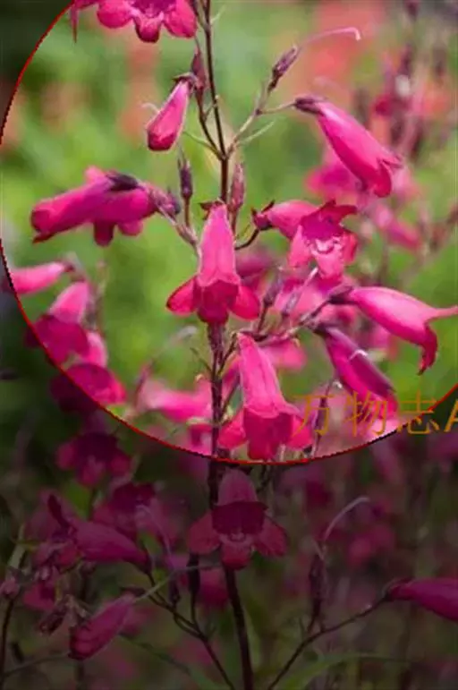 玄参科钓钟柳属,多年生草本,株高达90cm。单叶,对生或基生,披针形、线形,全缘,光滑或有毛。总状花序,亮红色,小花长2.5cm;花冠二唇裂,下唇反卷有毛;上唇突出;雄蕊5枚,雌蕊1枚;花期夏季,蒴果秋季成熟。有粉花及红花栽培品种。