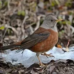 灰头鸫:中型鸟类,体长23-27厘米。整个头、颈和上胸褐灰色,两翅和尾黑色,上、下体羽栗棕色。…