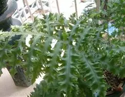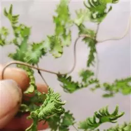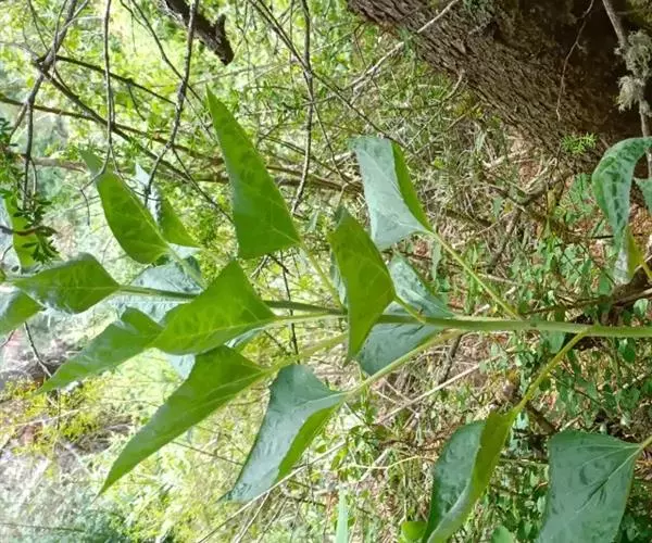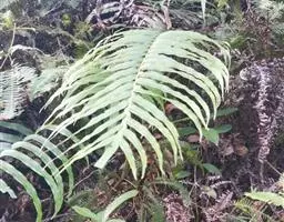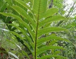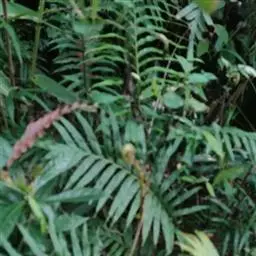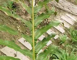 植株蔓攀,高达5-7米。叶轴纤细如铜丝,二回羽状;羽片多数,相距约7-9厘米,羽片对生于叶轴的距上,距长2-4毫米,顶端密生红棕色毛。不育羽片生于叶轴下部,长圆形,长7-8厘米,宽4-7厘米,柄长1-1.2厘米,奇数羽状,或顶生小羽片有时两叉,小羽片4对,互生,有2-4毫米长的小柄,柄端有关节,各片相距约8毫米,卵状三角形、阔披针形或长长圆形,先端钝,基部较阔,心脏形,近平截或圆形。边缘有矮钝齿,或锯齿不甚明显。叶脉清晰,三出,小脉2-3回二叉分歧,斜向上,直达锯齿。叶薄草质,干后暗黄绿色,两面光滑。能育羽片长圆形,长8-10厘米,宽4-6厘米,通常奇数羽状,小羽片的柄长2-4毫米,柄端有关节,9-11片,互生,各片相距7-10毫米,三角形或卵状三角形,钝头,长1.5-3厘米,宽1.5-2厘米。孢子囊穗排列于叶缘,到达先端,5-8对,线形,一般长3-5毫米,最长的达8-10毫米,黄褐色,光滑。